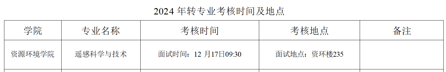 2024年转专业考核时间及地点