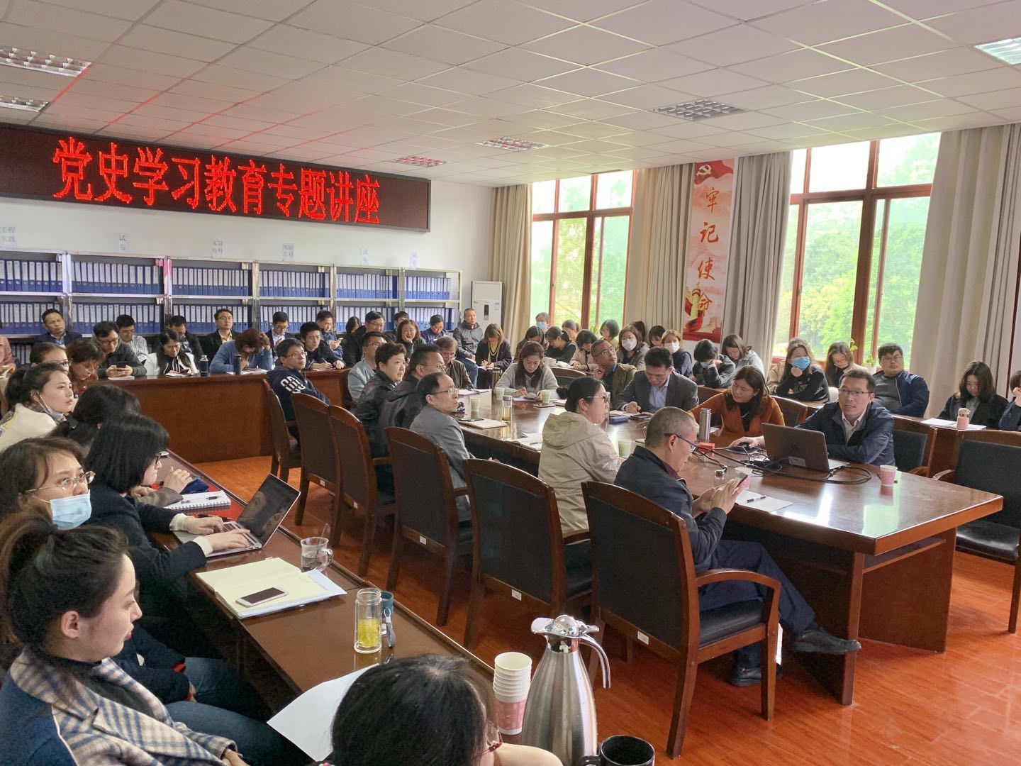 2021年4月19日下午,伟德国际1949始于英国教职工在资环楼221会议室进行中国共产党党史学习教育专题讲座,集中学习中共党史重要会议-遵义会议,专题讲座由公司组织部熊建部长主讲,公司党委书记李蕖主持。一同参与学习的单位还有机关党委组织部、图书馆和人事处的教职工。