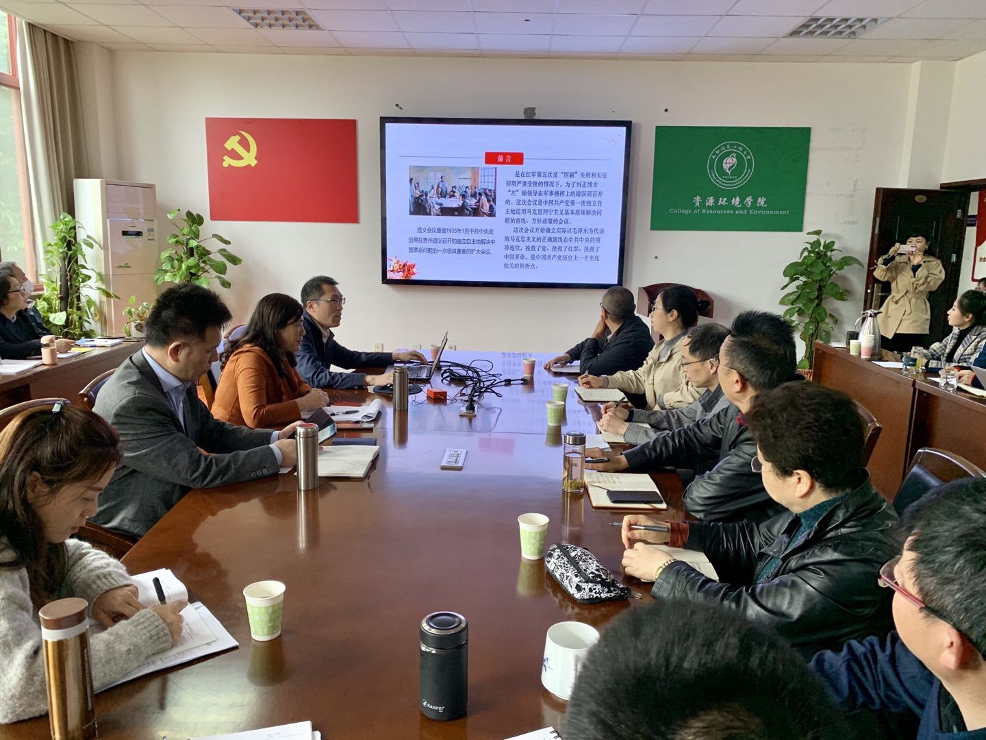 熊部长首先讲解了中国共产党史上重要会议——遵义会议,包括它的意义和进程,以及第一次独立自主地运用马克思列宁主义基本原理。其次,熊部长详细解读了遵义会议召开的历史背景包括“左”的思想的危害、军事上的失败和经济上的困难;遵义会议召开前毛泽东军事权利的剥夺,遵义会议中周恩来的作用,遵义会议确定的核心之争等。还讲解了井冈山农村革命根据地的建立,中央革命根据地第五次反“围剿”,遵义会议的前奏:通道会议、黎平会议和猴场会议和六届六中全会的经过。