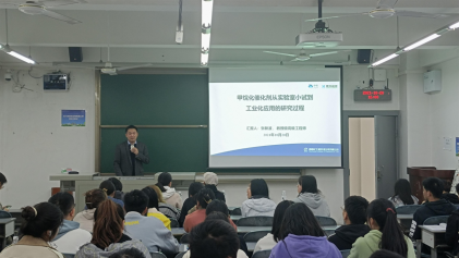 张新波老师为大家讲述了一个项目是如何从实验室到小试再到中试这一系列过程。在会上他不断强调一个理念“实验失败并不可怕,可怕的是没有一颗坚持不懈的恒心”,最后他还为同学们的学习、就业给出了宝贵意见和建议。