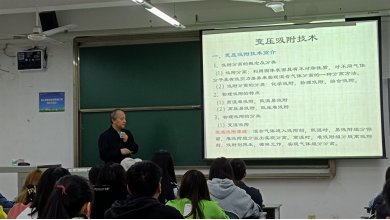 杨老师为同学们介绍了变压吸附这一新型技术,该技术主要用于分离一种或者多种气体,并以举例子的形式为大家阐述了该技术在环保领域的应用。会上杨老师一直强调做环保不仅要做到治理更应该做到资源化,这样才能为环境、为社会带来更多经济效益,这一理念深受广大专业人士的赞同。