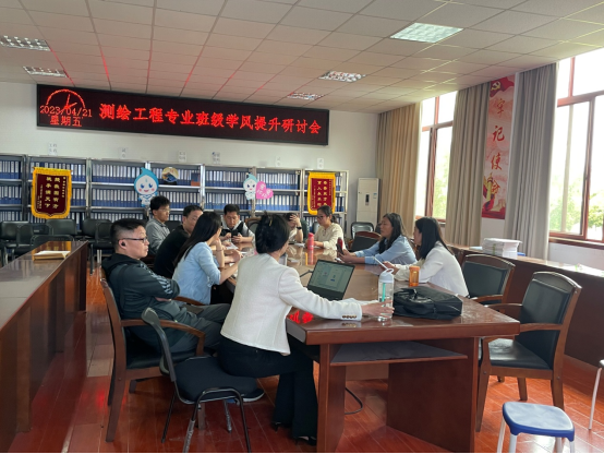 深入开展学习贯彻习近平新时代中国特色社会主义思想主题教育走深走实,公司测绘工程专业老师于2023年4月21日下午,在资环楼221会议室,针对测绘类专业班级学习和学风现状开展专题研讨交流。研讨交流分两步,一是专业教师之间交流研讨,二是专业教师与员工之间的交流。公司党委书记李蕖,公司经理徐成华,公司副经理方淑红参加了该研讨会。会议分别由测绘教研室主任王永前老师,21级辅导员王小宁老师主持。
