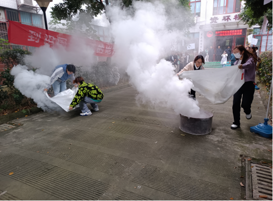 员工进行“快速连接水枪水带”及“灭火毯扑灭烟幕弹”的安全技能训练