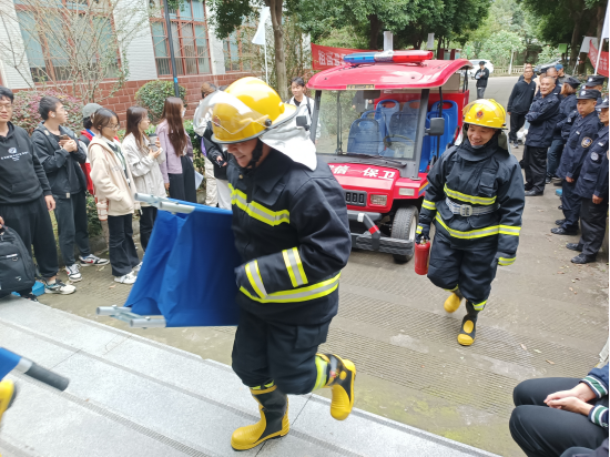 接到报警后,公司微型消防火速到达资环楼事故现场