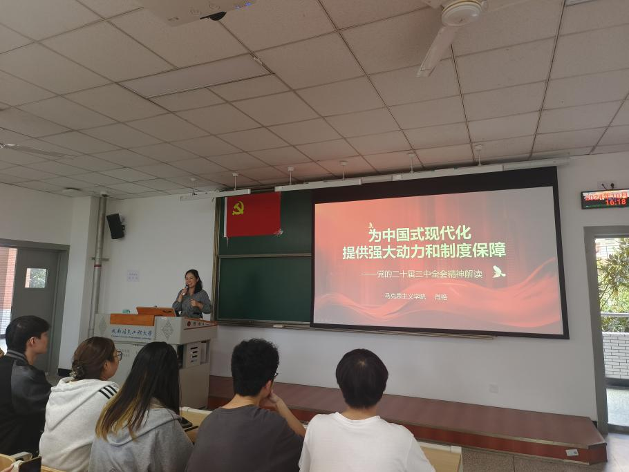 为深入贯彻学习党的二十届三中全会精神,2024年10月17日下午,资源环境公司党委组织师生党员在1307教室进行专题学习,邀请马克思主义公司肖艳老师做《为中国式现代化提供强大动力和制度保障---学习党的二十届三中全会精神》专题报告。