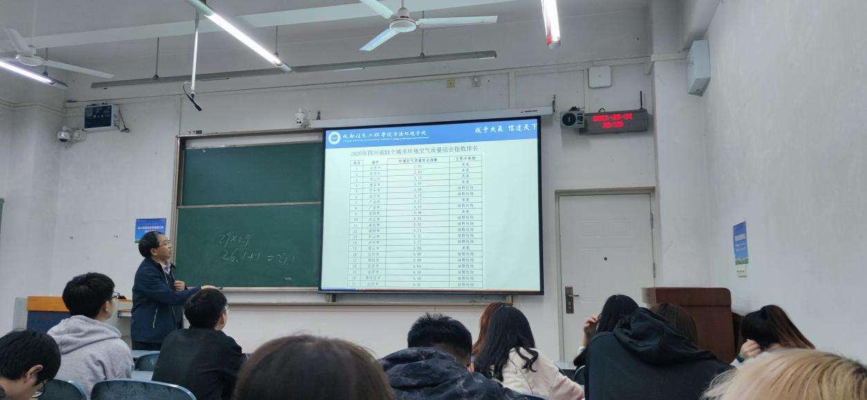 2021年3月31日7点30分在1103教室,以环境空气质量监测与评价方法为主题的讲座正式开始。叶芝祥老师向我们详细讲解了环境空气质量标准、环境空气质量监测布点方法、环境空气质量监测方法和环境空气质量评测方法。在讲解过程中,我们知道了环境空气质量优良评价标准,还了解了环境空气质量指数及首要污染物的确定方法等。