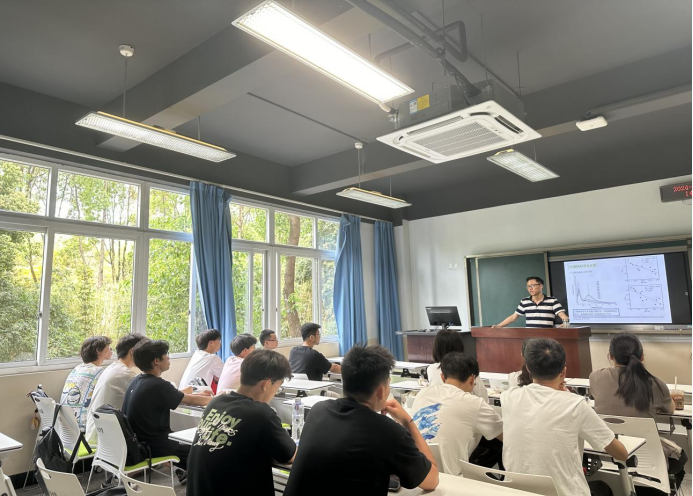 郭老师首先介绍了溶解性有机物的来源及其在环境中的化学行为等有关溶解性有机物的知识。随后介绍了溶解性有机物的研究方法,指出通过光谱分析技术能够得到关于溶解性有机物的结构和组成信息,这在环境监测和污染控制等领域具有广泛的应用前景。随着环境污染问题的日益严峻,溶解性有机物作为水体和土壤中普遍存在的一类物质,其来源、结构、转化过程及生态效应成为环境科学研究的热点。郭老师强调,光谱技术因其高灵敏度、快速和非破坏性的检测特点,已经成为研究溶解性有机物的重要工具。此外,郭老师还分享了其在研究过程中的趣闻趣事,为大家提供丰富的专业知识的同时也激发了大家对科学研究的热情。郭老师的讲座,无疑为在座的每一位同学打开了一扇通往环境科学研究新领域的大门。