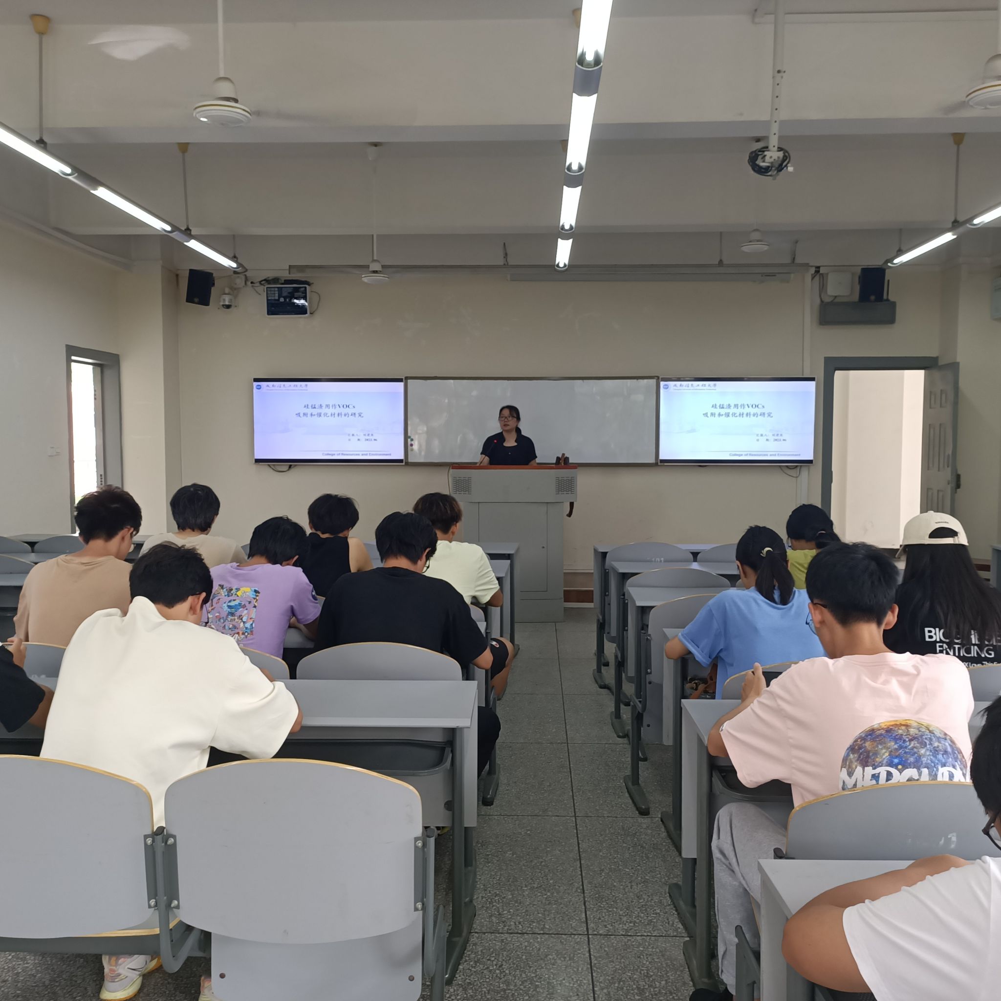 刘建英教授为本次讲座的主讲人。刘教授围绕其研究背景及意义,硅锰渣用作VOCs吸附材料,矾渣型分子筛对甲苯的吸附以及其催化氧化性能做出主要讲解。刘教授通过讲解硅锰渣用作VOCs吸附材料的探索过程,实验过程,比较过程以及最终所得出的结果,同学们了解认识了讲座的主题并引发了思考。