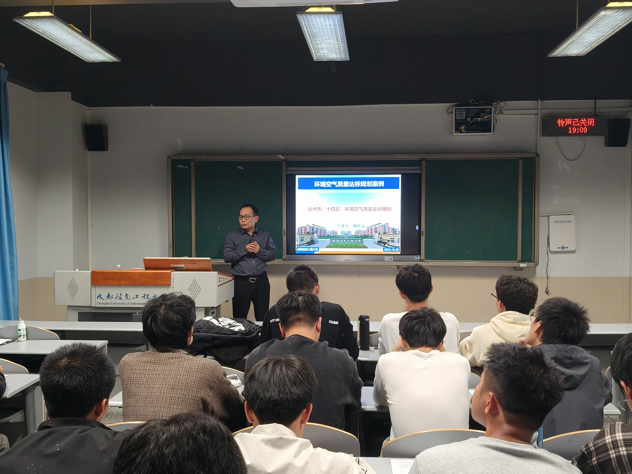 在2024年10月30日晚19:00,伟德国际1949始于英国环境工程243班全体同学在H4206参加了由杨怀金老师主讲的以“环境空气质量达标规划案例”题的讲座。
