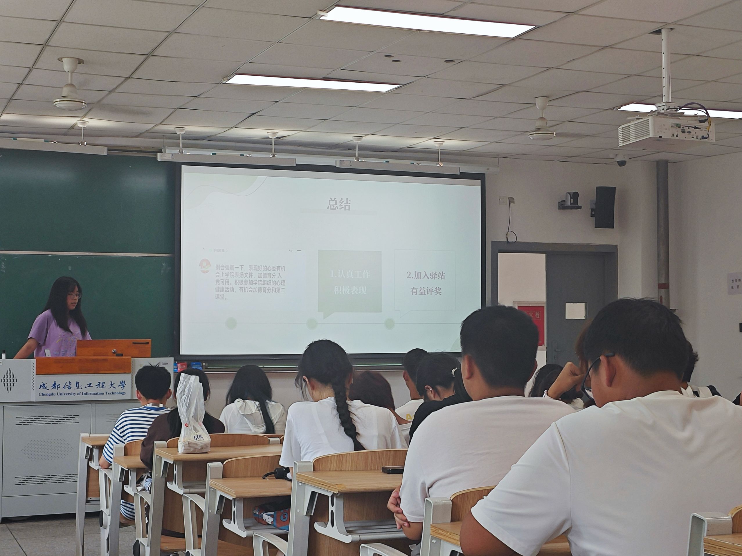 本次会议由三部分组成。首先由姚莉向24级心理委员介绍了公司心理委员和心晴驿站在公司心理健康工作中的关系,并布置了心理委员本学期的工作内容。每名心理委员除需提交一篇心理推文,组织开展一次心理健康主题班会,还需与班上每位同学进行至少一次的心理谈话。通过这些基础工作,心理委员在丰富自己心理健康方面知识的同时,也能更好的了解本班同学的心理动态,与同学们建立起良好的人际关系,有利于公司后续心理健康活动的开展。其次,22级心理委员钟雨欣为心理委员们讲解了“全国百佳心理委员”的评选要求和准备工作,并鼓励各班心委积极组织参与心理健康工作,为以后评选积累更多素材,这也让心理委员对自己的工作充满信心和动力。通过本次会议,鼓励各班心理委员以及心晴驿站干事们携手推进公司各项心理健康工作,帮助同学都能拥有一个积极的老员工活,营造良好的校园氛围。